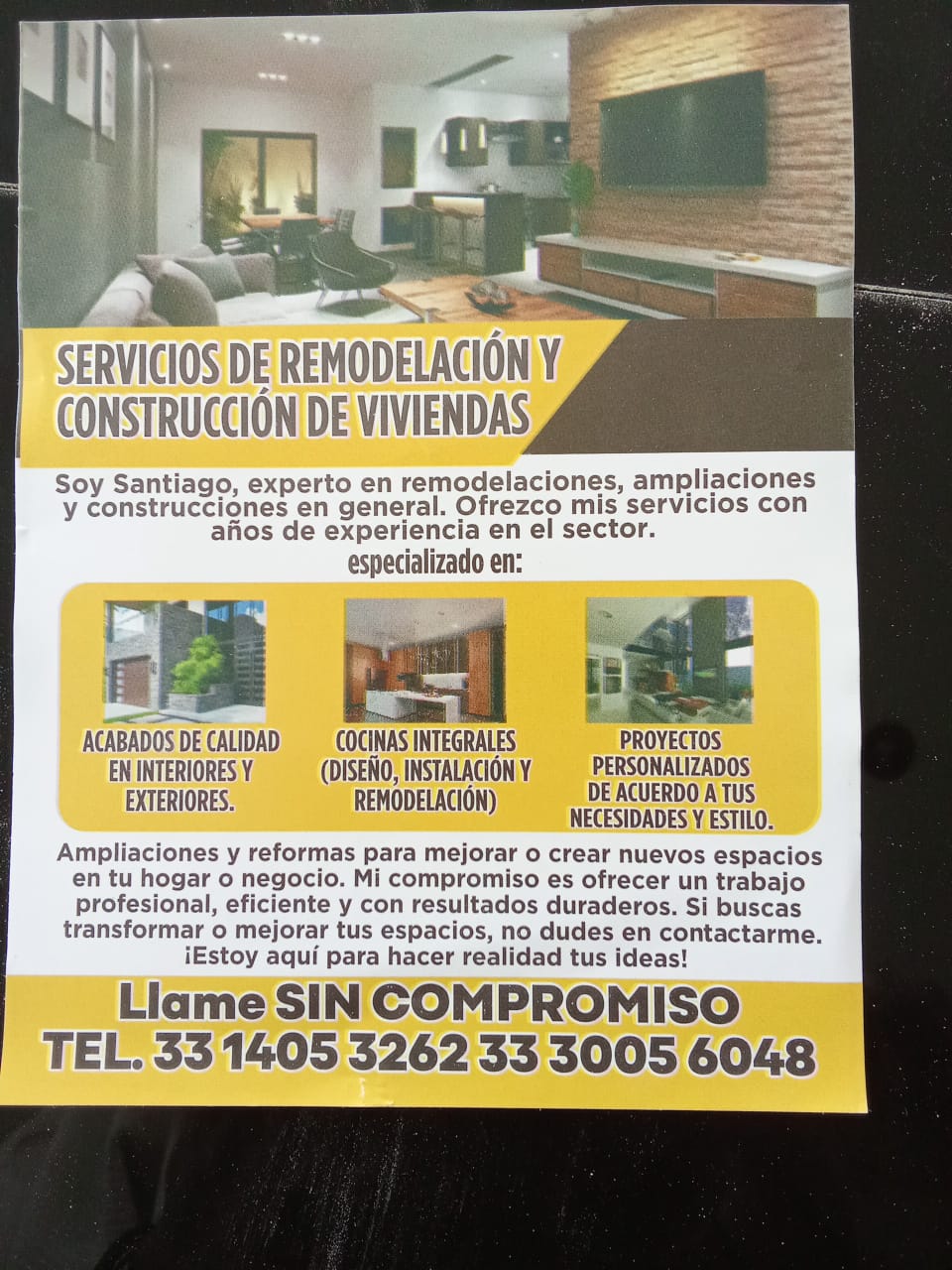 Soy Santiago, experto en remodelaciones, ampliaciones y construcciones en general. Ofrezco mis servicios con años de experiencia en el sector.